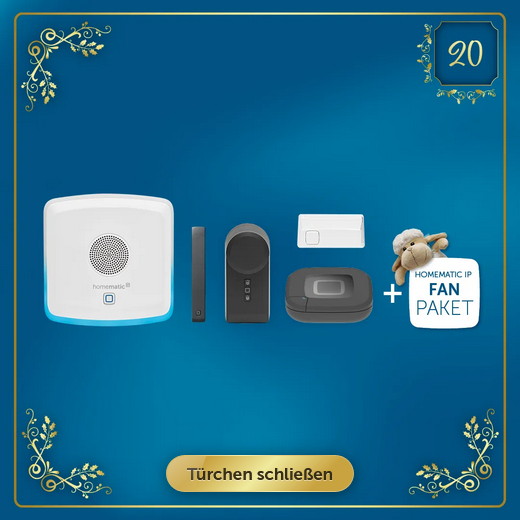 Im 20. Türchen des Homematic IP Adventskalenders verlost Homematic IP ein smartes Zutritt-Bundle in Anthrazit, mit dem Sie Ihre Haustür intelligent steuern und zuverlässig überwachen können.